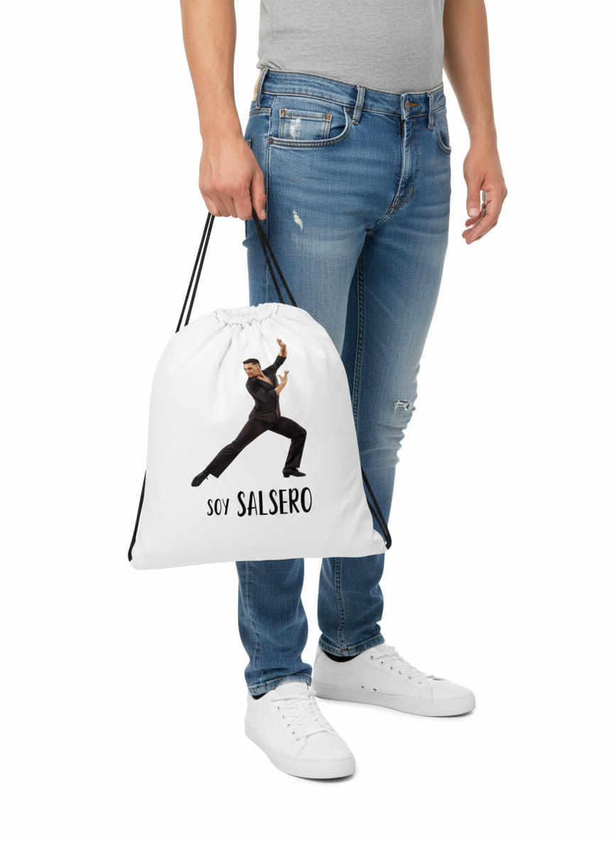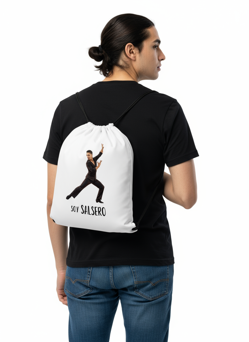 Designed with the Soy Salserobailador“, this drawstring bag is the perfect companion for your dance shoes — or anything else that travels with your rhythm.