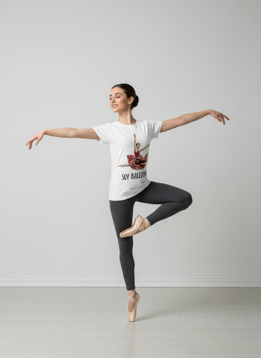 Move with grace, live with passion! This soft, lightweight T-shirt is your essential off-duty layer. Designed for ultimate comfort, it offers freedom of movement whether you’re stretching before class or just enjoying the day. Featuring your elegant dancer logo, it’s a subtle nod to the barre and a constant reminder to move with purpose. It’s the perfect blend of athletic function and effortless everyday style
